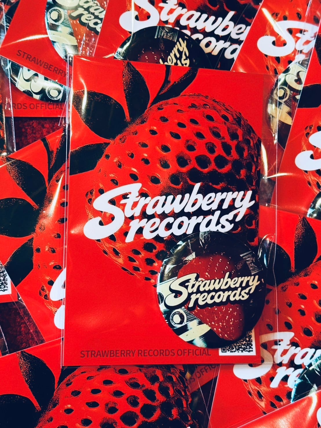 STRAWBERRY RECORDS official ポストカード付きバッヂ。